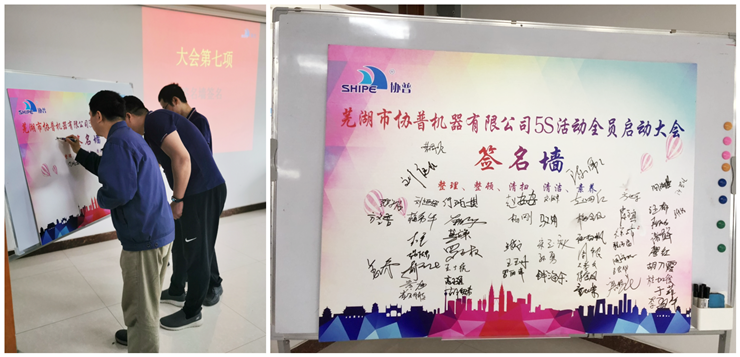 全員宣讀完誓詞后大會進(jìn)入最后一項:簽名墻簽名。全體協(xié)普成員陸續(xù)上臺落款簽名,表達(dá)對公司”5S” 管理改善活動會給予全力落實推進(jìn)。