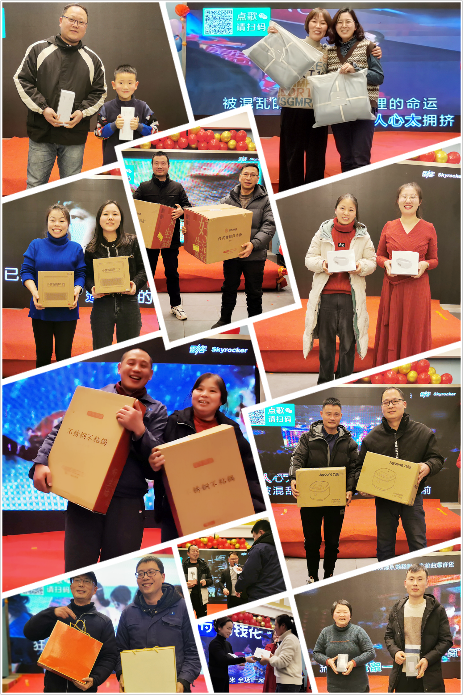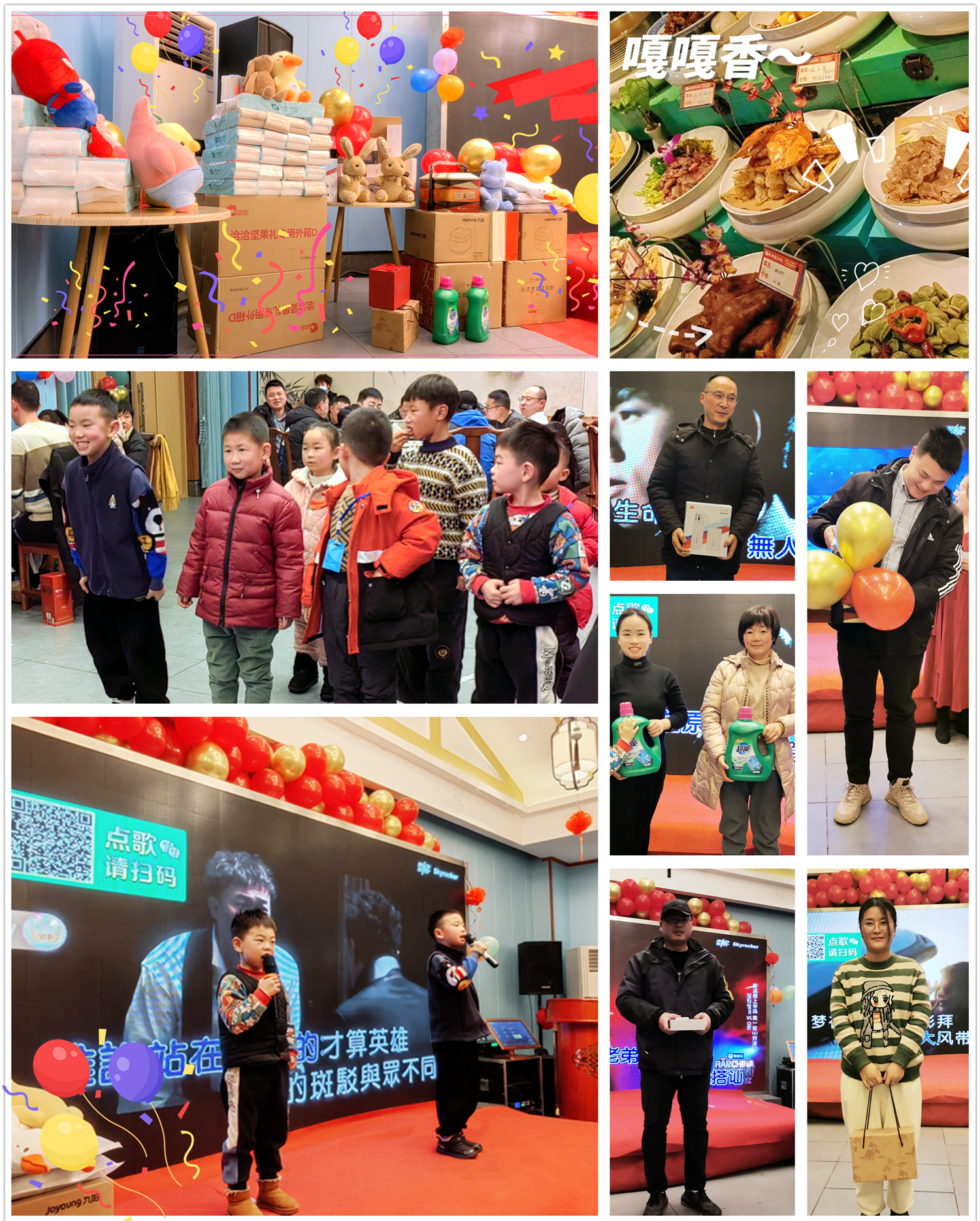年會(huì)最激動(dòng)人心的莫過(guò)于幸運(yùn)大抽獎(jiǎng), 本次年會(huì)抽獎(jiǎng)公司準(zhǔn)備了一批精美的生活電器禮品禮盒,還有暖心的生活家居用品、可愛(ài)的布偶娃娃,伴隨著抽獎(jiǎng)和各項(xiàng)小游戲,開(kāi)始了年會(huì)的晚宴環(huán)節(jié),以此來(lái)答謝各位協(xié)普家人一年來(lái)的辛勤工作與默默付出。大家聚在一起,舉杯歡飲,共襄盛舉。更有協(xié)普小朋友們的熱情暖場(chǎng),現(xiàn)場(chǎng)氣氛熱烈,歌唱聲、嬉戲聲、祝福聲、碰杯聲此起彼伏......