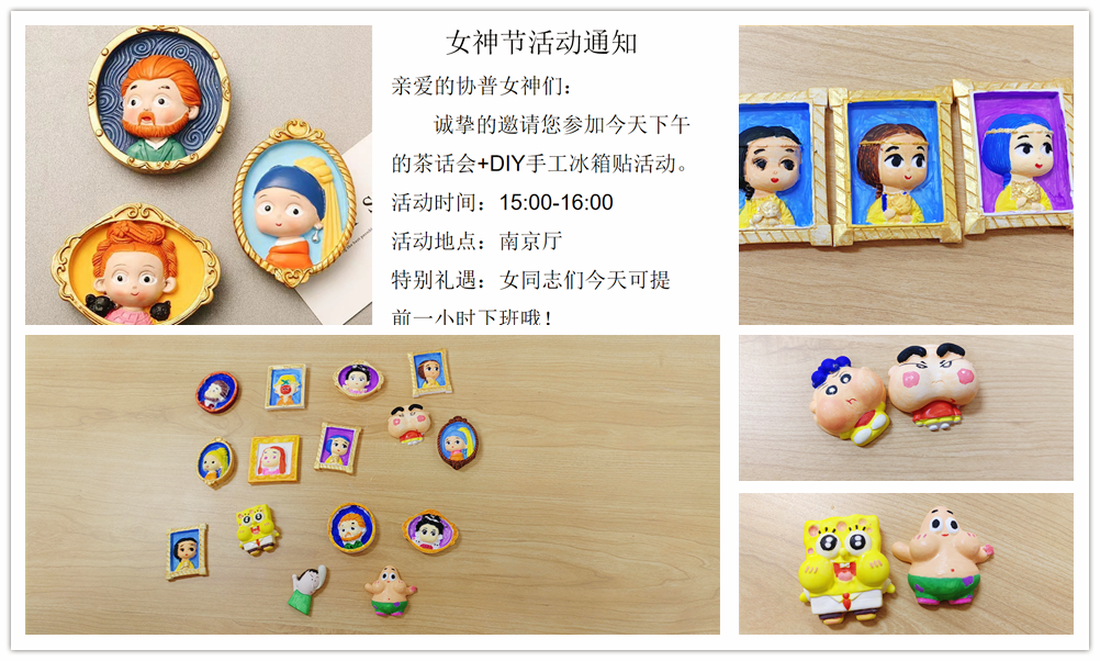2023年3月8日,值此婦女節(jié)到來之際,協(xié)普不僅為在廠的各位女士準(zhǔn)備了暖心的生活禮品,還將大家聚在一起舉辦了輕松愉快的手繪活動。現(xiàn)場氣氛歡快,大家悠閑地完成了各自的手繪冰箱貼,活動結(jié)束后全體女同志提前下班,開心地結(jié)束了一天的工作。